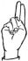 На ћирилици написано СИМОН МАНОЈЛОВИЋ састоји се из 15 слова [?]. Исписано ћириличном једноручном азбуком за глувонеме: